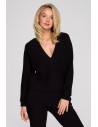 Dzianinowa bluza z głębokim dekoltem V - kremowa